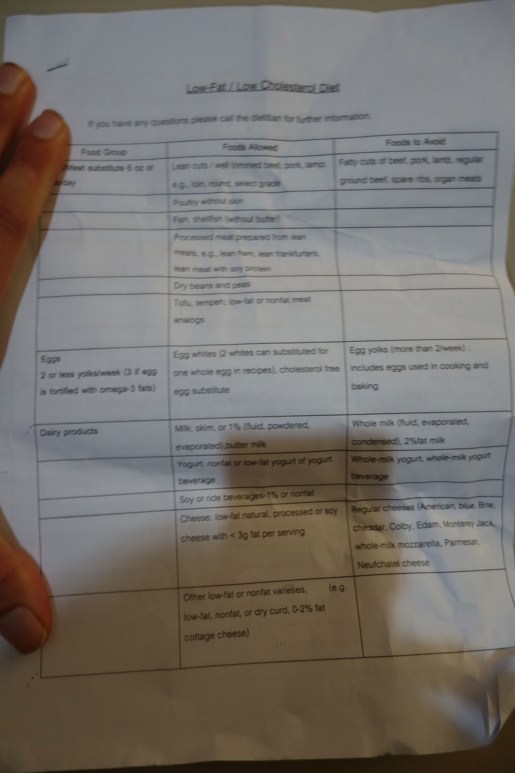 Another thing of note is the diet plan that the hospital provided also goes against modern science, inferring that dietary cholesterol and saturated fat relates to cardiovascular disease, this is simply not true.