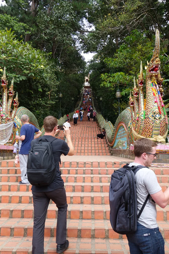 Doi Suthep is an active temple being used, which I’ll admit was kind of strange. I can’t imagine it would go down well in England for a bunch of tourists to barge in to a church during a Sunday service and then start taking photos whilst people were praying.