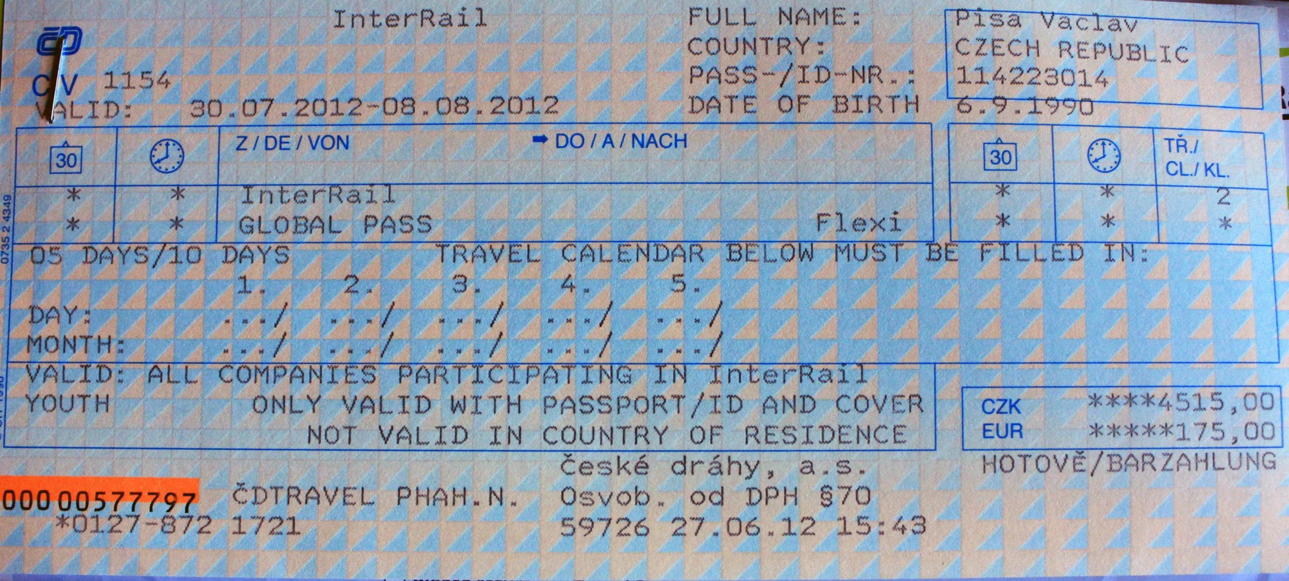 This comes to 6 weeks and 2 days, 10 train journey, through 6 countries and crossing 7 borders all for €450. Half the price of a 1 month InterRail global ticket.