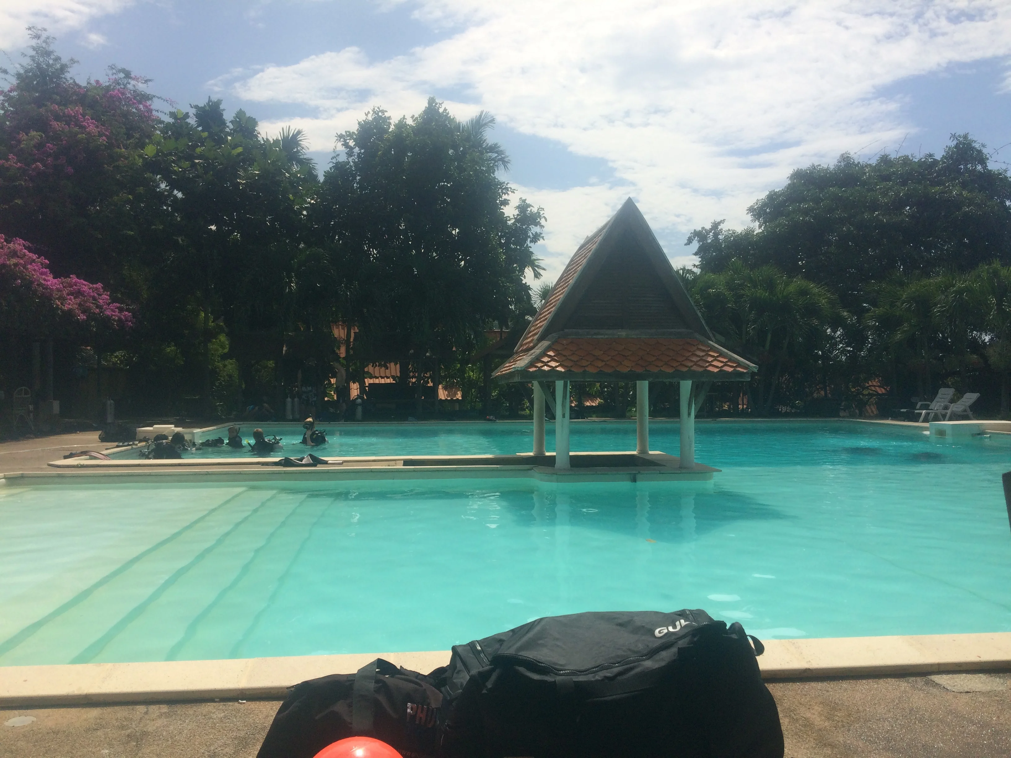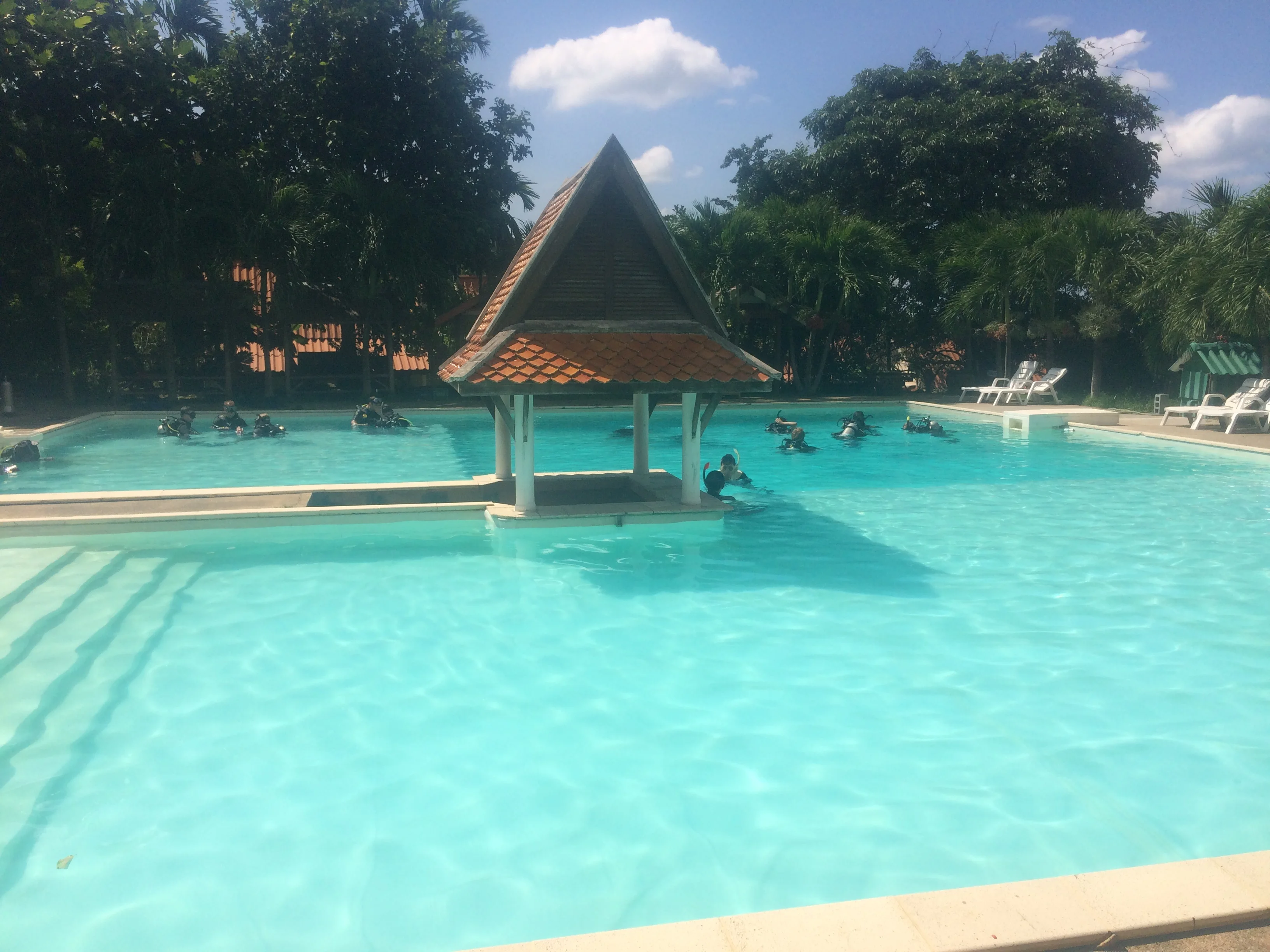 The PADI rescue diver course is a two day course, with the first day involved swimming pool work. In the pool we drilled different rescue scenarios as well as went over different skill requirements, such as switching between snorkel and respirator under water. It was fairly simple and only lasted a couple of hours!