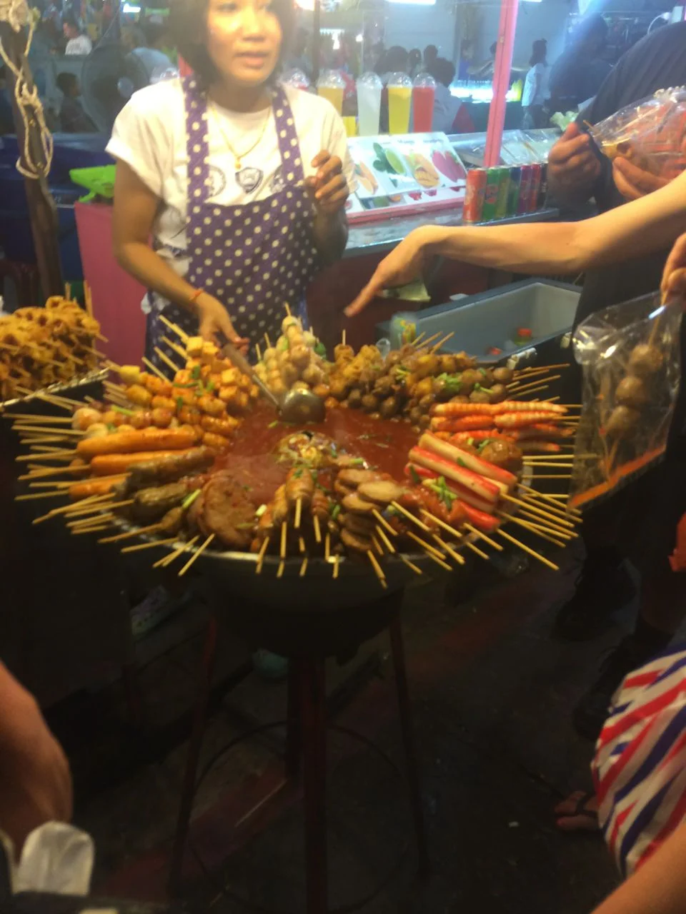 When you get out of the clothes stalls the rest of the market is dedicated to food, all the food! Walking around in a group of 7, our pace was slow, as someone always wanted something from one of the stalls. Whether it was fish balls, meat on a stick, spicy papaya salad, ice cream, pancakes, bubble tea, sushi, omelettes, anything, it was all available and all eaten as we went!